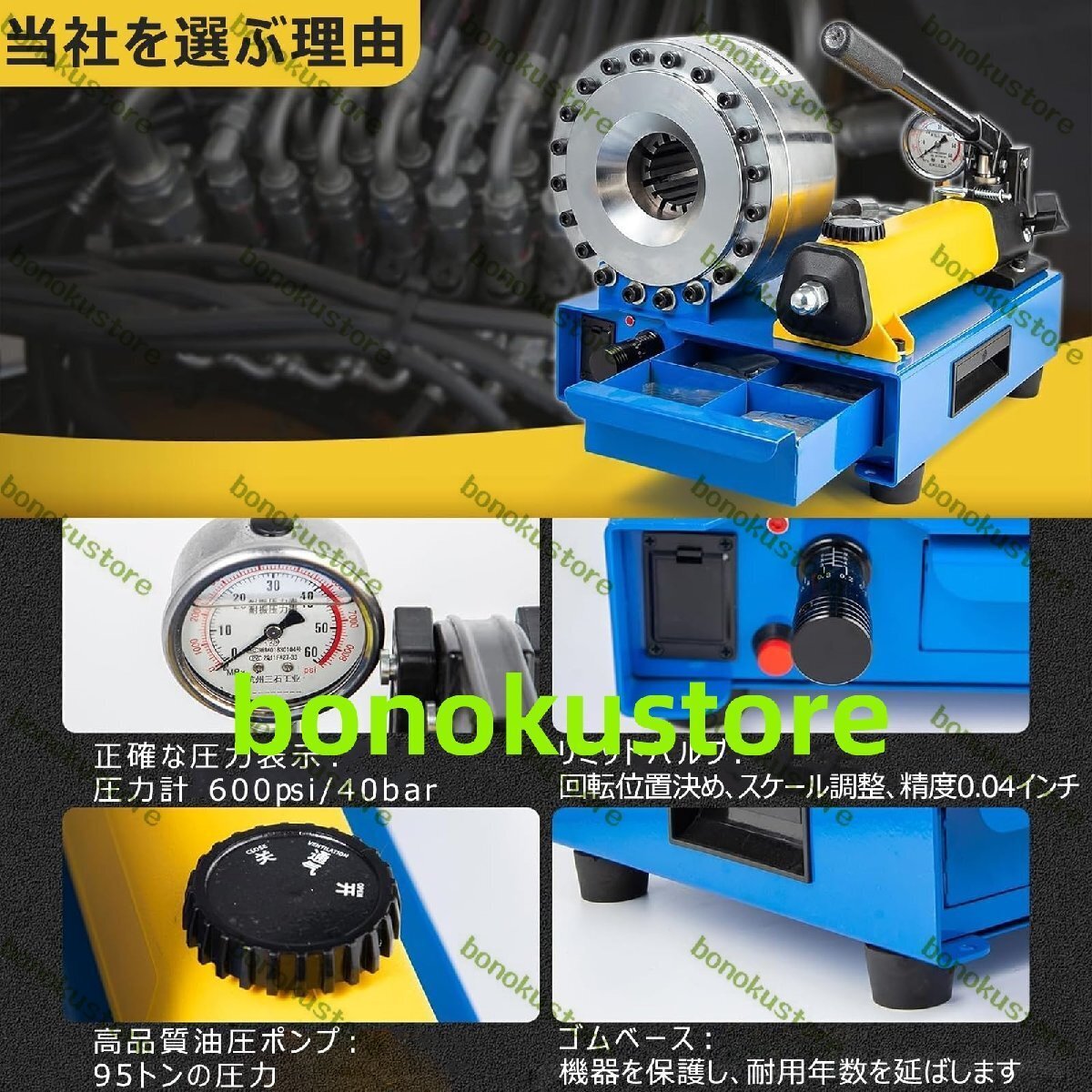 【複数のサイズ】油圧ホース圧着工具、8つのダイスを装備。モールドサイズ範囲:10/12/14/16/19/23/27/30mm、最大開口部(モールドなし):(48mm)。100R7~100R2のデュアルコアホースに適合します。精密圧着:油圧ホース圧着機は、1/4 インチから 1 インチの 1&2 ライン