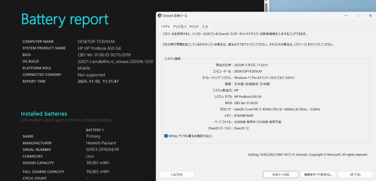 | OS | Windows 11 Pro (ライセンス認証済) |