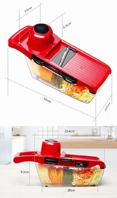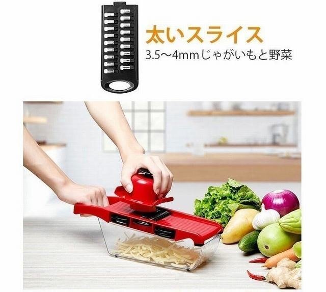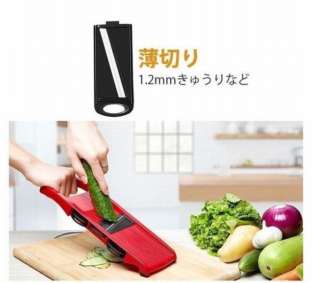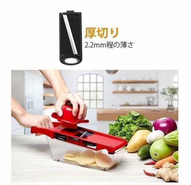 商品仕様 商品名:多機能スライサー 材質:食品級ABS素材、ステンレス刃 リスト:本体+6枚刃+固定具+収納ケース 特徴:急速耐久、使用便利 機能:果物や野菜の切り サイズ:掲載写真をご参照ください。