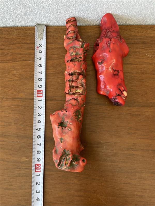 | #10367T 本サンゴ 本珊瑚2点セット 約400g 加工・展示用/コレクション/アンティーク | ||