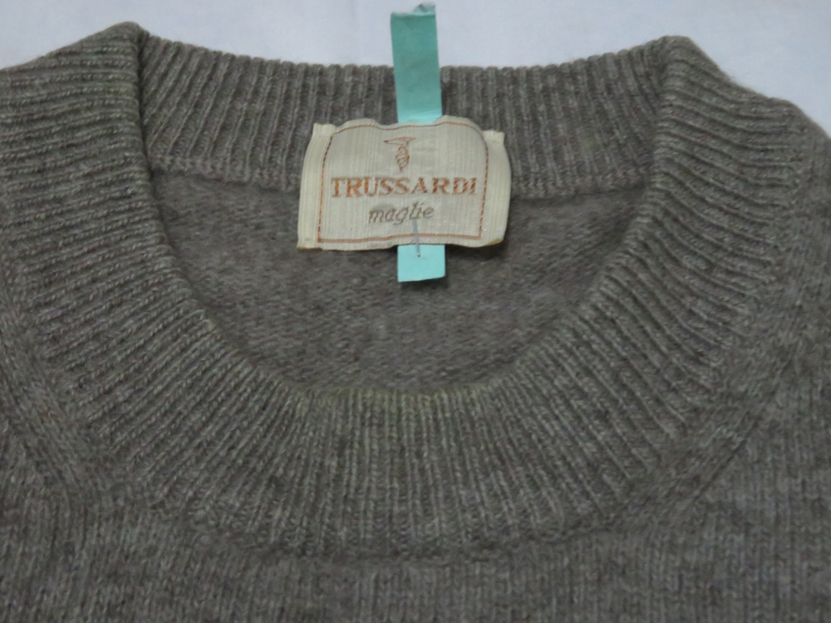 今週末までの期間限定値下げです。 最終値下げになります。 期間終了後は元の価格3,980円に戻ります。 レアなトラサルディクルーネックセーターです。 30年位前に購入、しばらく着用後クリーニングして保管してあったものです。 使用感はありますが程よいヴィンテージ感が出ているかと思います。 肌触りの良いセーターです。 胸元の刺がカッコイイです。 Lサイズ相当 身幅約58cm 着丈約65cm ウール100% 古着の長期自宅保管品のため神経質な方の入札はお控えください。 他にもセーターやTシャツなど出品していますのでよろしければご覧ください。 ※いやがらせ入札が続いているので、新規や評価の悪い方の入札・落札は取り消します。 ※落札後、24時間以内の開始連絡と2日以内のお支払い、商品到着後24時間以内の受取連絡ができる方の入札をお願いたします。 ※埼玉か関西地区からの発送となります。 ※発送できない期間等については自己紹介欄でお知らせしますのでご確認ください。 | |||
