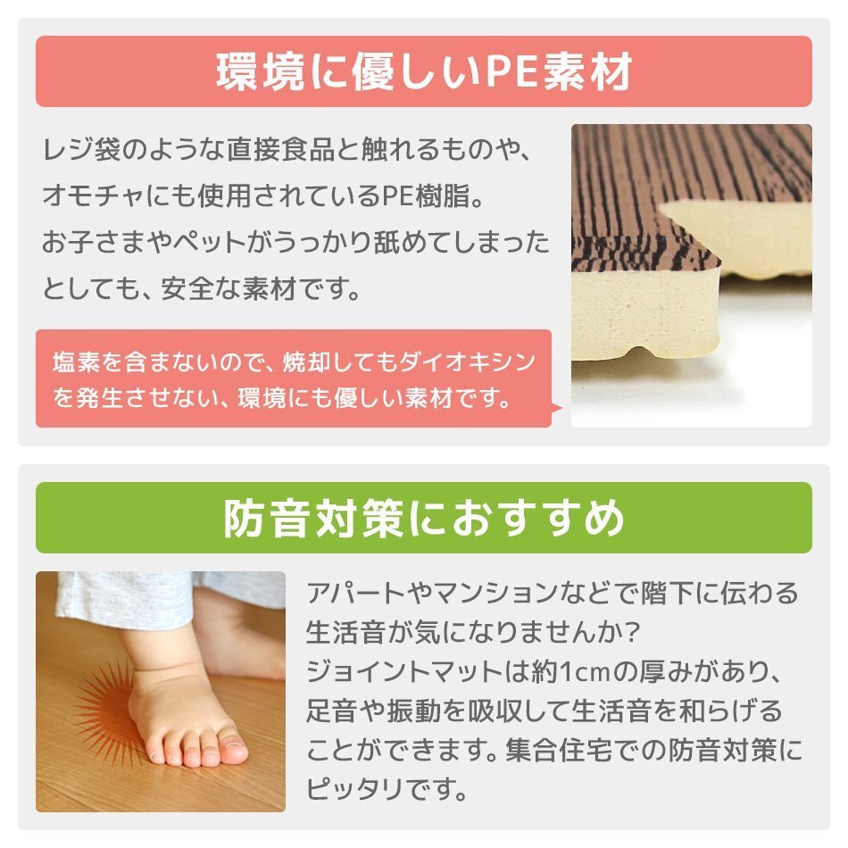 | 60cm 大判 ジョイントマットです。 カッターやはさみで簡単に切れるのでレイアウト自由自在! 足音をやわらげてくれるので、子供部屋やフローリングのお部屋に最適です! 適度なクッション性が転倒時に衝撃を和らげてくれます! 冬は床下からの冷気をカット! 夏は冷房による温度を効率よく保ちます。 汚れた部分は取り外して水洗いが出来てカンタンお手入れ♪ 嬉しい!サイドパーツ付き! 壁ぎわに敷いても、隙間なくキレイに。 掃除がラクラク!! 自然をイメージした木目デザイン! お部屋に落ち着いた雰囲気を与えてくれます! 【商品仕様】 カラー:ホワイト サイズ(約):幅60×奥行60×厚み1.0cm(※1枚) (設置目安サイズ(約):121×121cm(正方形)) 素材:PE素材 【商品内容】 ジョイントマット 64枚 サイドパーツ(角付きパーツ64本、角なしパーツ64本) ※床材との温度差で製品が反る場合があります ※入荷時期によって厚みや幅に多少の誤差がある場合がございます ※商品はモニターによって色合いが異なって見える場合があります (マット 木目 木目柄 WEIMALL WEIWEIホールディングス) |