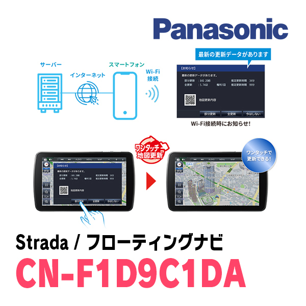 | セット内容 | ◆ナビゲーション本体 (Panasonic/CN-F1D9C1DA) ◆20P/5Pコネクター ◆アンテナ変換コード ◆ステアリングスイッチ変換ハーネスセット ◆SUBARU純正ラジオブラケット |