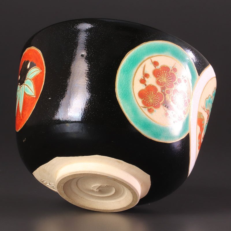 つややかな黒に松竹梅の絵付けが華やかに映えるお茶碗です。 ★商品は十六代永楽善五郎(即全)の作品である事を保証致します。 |