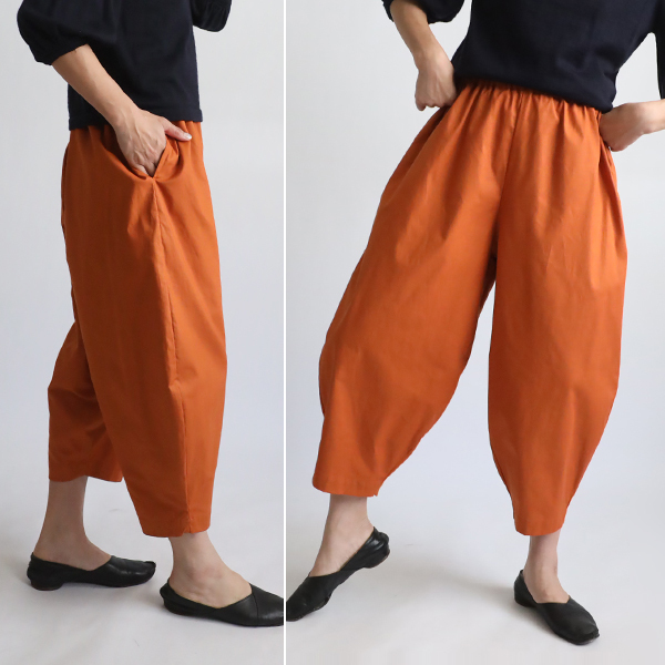 ふんわりとした丸いシルエットが特徴のパンツ。
