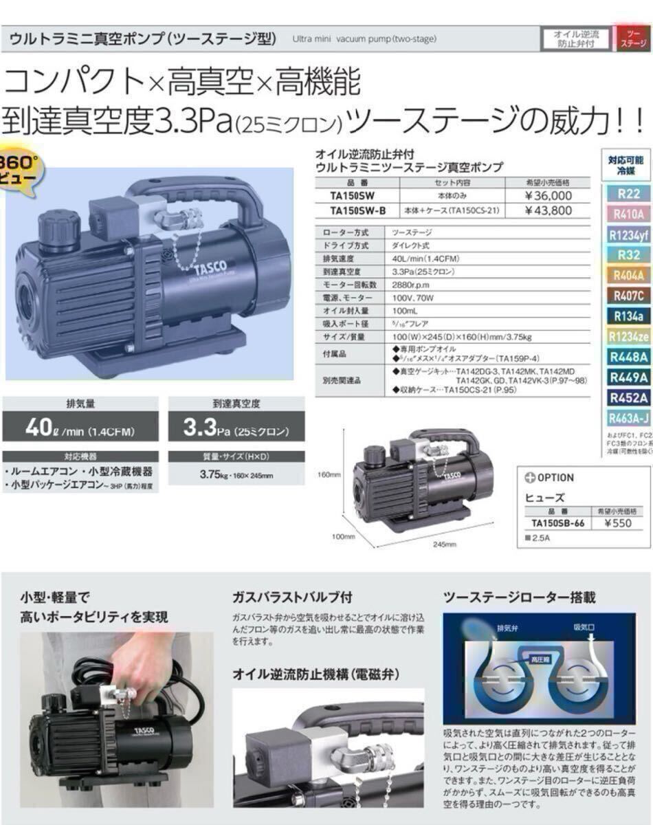 1. 真空ポンプ(TA150SW)/予備ヒューズ