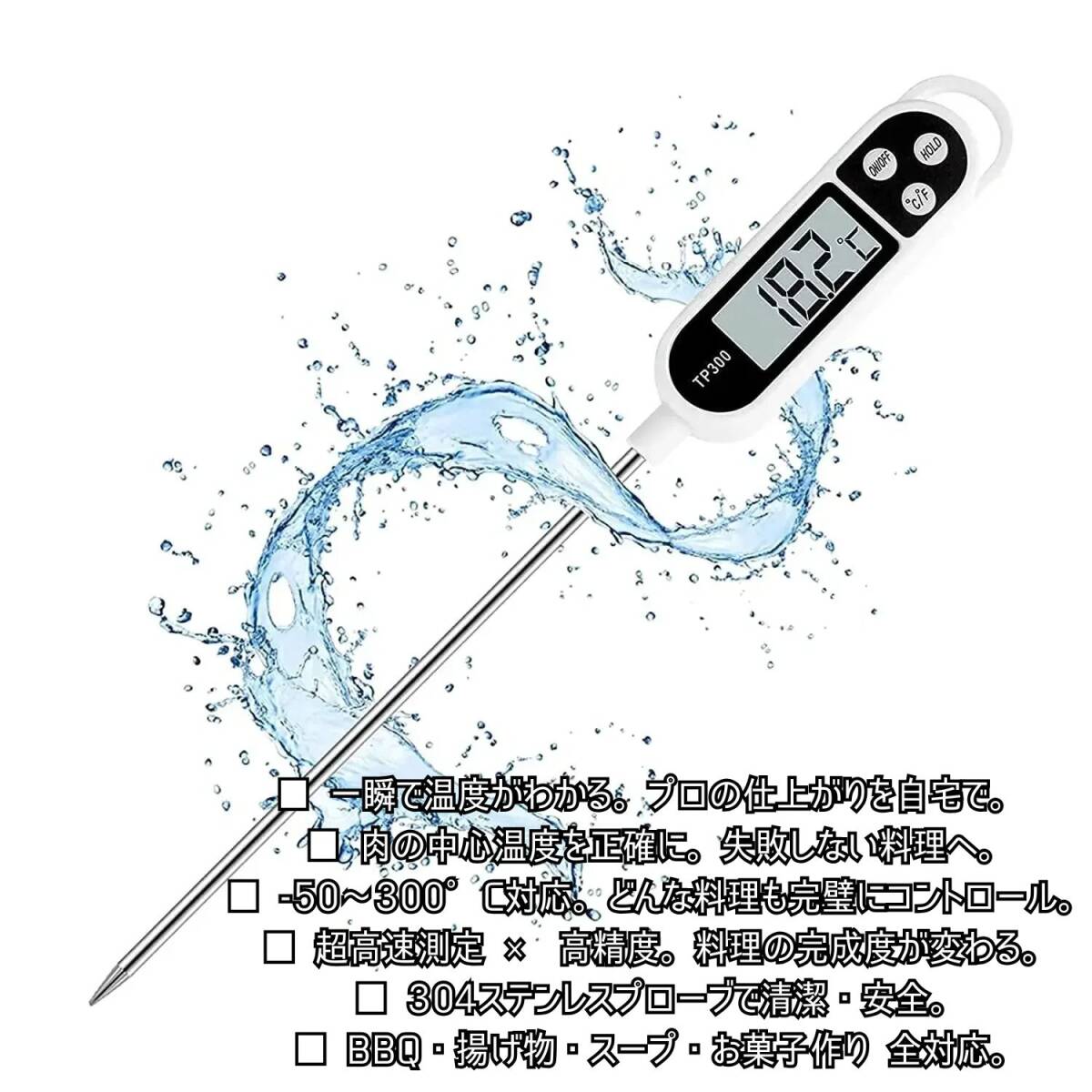 ● 高精度デジタル食品温度計 -50°C〜+300°C(-58°F〜+572°F)まで測定可能。肉料理、揚げ物、牛乳、ベビーフード、BBQ、スープなど幅広く対応します。 ● 304ステンレス製プローブ 耐久性の高い304ステンレススチール採用。安全でサビに強く、食品用途に最適です。 ● 大型デジタル表示 & 読みやすい液晶 33×15mmの見やすいスクリーンで温度を即座に確認できます。 ● ワンタッチ操作 & HOLD機能 「HOLD」ボタンで測定値を固定でき、プローブを抜いた後も温度を確認できます。 ● 自動電源OFFで省エネ 約15分で自動的に電源オフ。電池消耗を抑えます。 ● 軽量わずか20g 扱いやすく、アウトドア・キッチンどちらでも使えます。 ● フック穴付きで収納◎ 吊り下げ可能でキッチン収納に便利です。 ■ 仕様● 温度範囲:-50°C~+300°C / -58°F~+572°F ● 精度:±1°C(±1°F) ● 分解能:0.1°C / 0.1°F ● 単位切替:°C ⇔ °F ● プローブ材質:304ステンレス鋼 ● 本体材質:ABS樹脂 ● 電源:1.5V LR44/AG13 ×1 ● 自動電源OFF:15分 ● 重量:20g ● 全長:約24.5cm ● プローブ長:約14.5cm ● ディスプレイ:33×15mm ■ パッケージ内容・デジタル食品温度計 ×1 ■ 注意事項・測定時、ディスプレイ部分は防水ではありませんので水没させないでください。 ・照明やモニター環境により実物と色が異なる場合があります。 ・手作業で採寸しているため、多少の誤差はご了承ください。 |