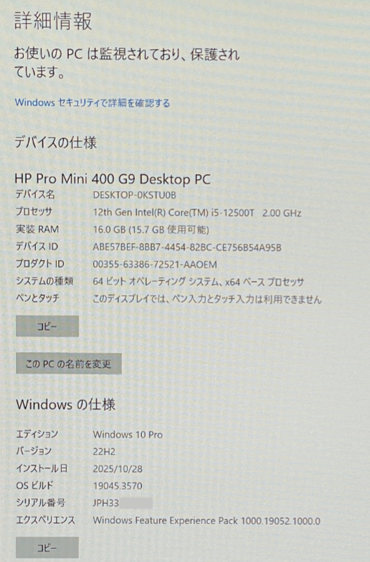 | ■品名 | HP Pro Mini 400 G9 |