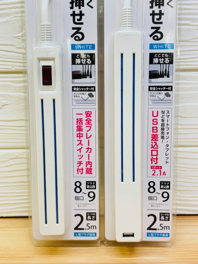 | 商品名 | 差込みフリータップ2ロング1USB2.1A2.5mホワイト |