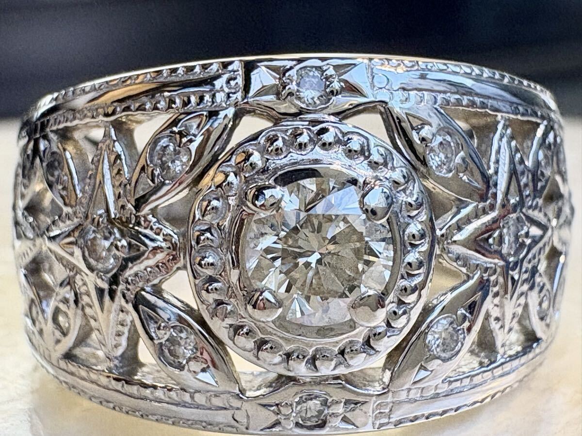| Pt900ダイヤモンドリング 4月の誕生石 ダイヤモンド:0.46ct(0.30、0.16) #11号サイズ(サイズ棒では11.2号くら) 透かしやミル打ちの施された手の込んだデザインリング カレッジリングのように地金をたっぷりと使い重量感がございます 中石は0.30ctありダイヤモンドリングとしてもインパクトがございます 内包物のほとんど見受けられません、透明感があり輝きのあるダイヤがセットされております お色味は若干イエローが感じられます デザインの中にはメレダイヤが輝きを添えています ご質問は遠慮なくどうぞ 刻 印:Pt900、ブランドマークのようなもの、0.30、0.16 材 質:プラチナ900 宝 石:ダイヤモンド0.46ct(トータル) 重 量:約13.75g サイズ:約 幅12mm~5.4mm(中央~底) 厚み5.3mm(中央ダイヤ部分) 付属品:なし <商品の状態ランク:Used品 A~B > N:新品 NA:新品同様 A:綺麗なお品 B:少し使用感のあるお品 C:使用感のあるお品 (基準はお客様の立場に立ち厳しく判断しておりますが、Used品が主ですのでご了承の上入札をお願い致します。基本的には使用感の少ない美品、または新品仕上げをしたものの出品になります) 新品仕上げ済みではございますが、微小な傷はご容赦くださいませ 洗浄/クリーニング済み <<<ご質問への回答>>> 自動再出品となりご質問が消えてしまった場合には、商品説明欄の一番下に追加として記載いたします ご確認頂けますようお願いいたします。 ◆トラブル防止の為、完全な状態を求める方や神経質な方は、申し訳ございませんが入札はお控え下さい、USED品とのご理解の上で入札をお願いします ◆お使いの環境により実際のお色味と異なる場合がございます、ご了承ください ◆当方が鑑定し本物の基準を満たした商品のみを出品しています <お取り引きについて> ※消費税は全て含まれた価格となっております ※落札から5日以内のご入金をお願いいたします 5日経ちましてもご入金がない場合は、落札者様都合のキャンセルとさせていただきます ※高額商品の場合にはカードの不正利用を防止し皆様に安心してお買い物をして頂くため、カードの有効性を確認させて頂いております 商品の発送に最長5営業日程度頂く場合がございますので予めご了承下さいませ ※商品に問題がある場合を除き、返品・交換はお受けしておりません ※[配送時の紛失、破損]30万円以内の商品についてはおてがる配送(ヤマト運輸)を利用しております、その為配送トラブルがあった場合にはお客様のほうでお手続きが必要になります こちらをご一読くださいませ https://support.yahoo-net.jp/SccAuctions/s/article/H000008837 ※梱包について、宅急便コンパクト以外は基本リサイクルのダンボールを使用いたします、ご了承ください ※プレゼント用ラッピングのご希望があれば対応いたします、お気軽にお申し付けください 販売業者 ジュエリーリマーニ 営業時間 12:00~18:00(定休日:月曜日及び日曜祝日) メールアドレス rie-t@jewelry-rimani.com ホームページ https://jewelry-rimani.com 古物許可番号 307731208486 | |