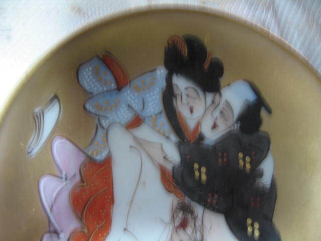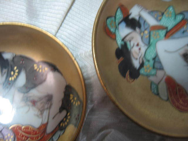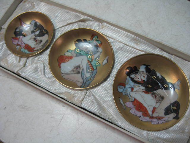 ★レトロ 当時物 九谷焼 春画 浮世絵 金彩 色絵 盃 3枚組