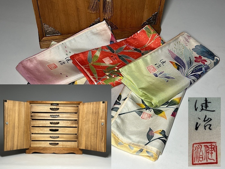 加賀友禅 毎田健治 華袱紗 コレクション 六点セット 木箱入り ◆商品詳細 寸法(約):木箱:31.1x32.8x32.8(高×幅×奥行cm) 袱紗:50.9x50.4(縦幅x横幅) ※寸法に若干の誤差が生じる場合もございます。 少し汚れ、シミがありますので、 ご承知の上入札お願いします。 状態等画像にてご確認の上ご入札よろしくお願いいたします。 ◆発送先等のご連絡とお支払いについて ※発送先等のご連絡 落札時から48時間以内にお願い致します。 ※お支払 かんたん決済の期限内にお願い致します。 複数点落札時にまとめて取引の場合(72時間内)に、 まとめて取引の取引手順(落札者方の操作)を参考にお願い致します。 梱包したサイズを測って、地方によって送料を決めますので、よろしくお願いします。 ◆掲載画像について ※画像は現物を撮影しておりますが、照度、遮光、モニターによっては実物と 色目が異なって見えることがありますのでご注意ください。掲載画像では確認 できない傷や汚れがある可能性もございます、あくまで 中古品であるということをご承知の上、御入札をお願い致します。 ◆補償について 商品到着後はすぐに状態の確認をお願い致します。 商品の破損等がございまし たら、箱や梱包材など全てそのままの状態で保存し、お早めにご連絡ください。 (到着日から一週間以上経過、梱包材の廃棄済み等の場合、保証は致しかねます のでご注意ください。) ◆返品について 思っていたイメージと違う、などのお客様主観による返品はお受けできません ので、予めご了承ください。ノークレーム、ノーリターンでお願いします。届 いた商品が商品説明と著しく異なる場合(寸法、キズ記載ミスなど)のみ承り ます。早めにご連絡ください。 ◆注意事項 当方の希望価格と隔たりがある場合は、終了前にやむなく取下げさせて頂く場 合がございます。 ※商品ご落札翌日から4日間以内にご連絡が取れない場合は、入札取消の処置を 取らさせていただく場合がございます。 ※評価の悪い方は取り消す場合がございます。 ※原則として当方の不備以外のキャンセル・返品・返金は受け付けておりません。 以上の点を予めご了承頂いた上で、入札・落札お願い致します。 ◆発送方法 ▼ゆうパック(補償あり/追跡あり) 梱包後のサイズ:~約120cm ※送料全国一律1830円 (但し北海道、沖縄、離島は+500円いただきます。) 発送元は静岡県となります。 ( 商品の組み合わせによっては同梱をお断りさせていただく場合があります。) ※大型商品について 郵便局の規定を超える商品の場合は、佐川急便またはヤマトでの発送となります。 |