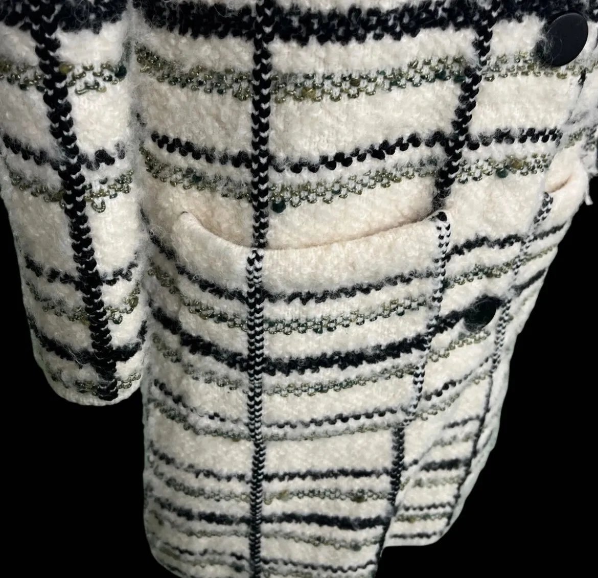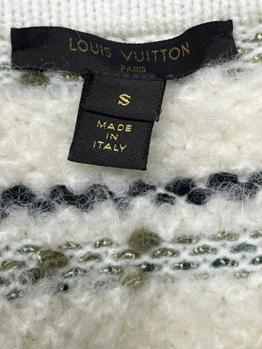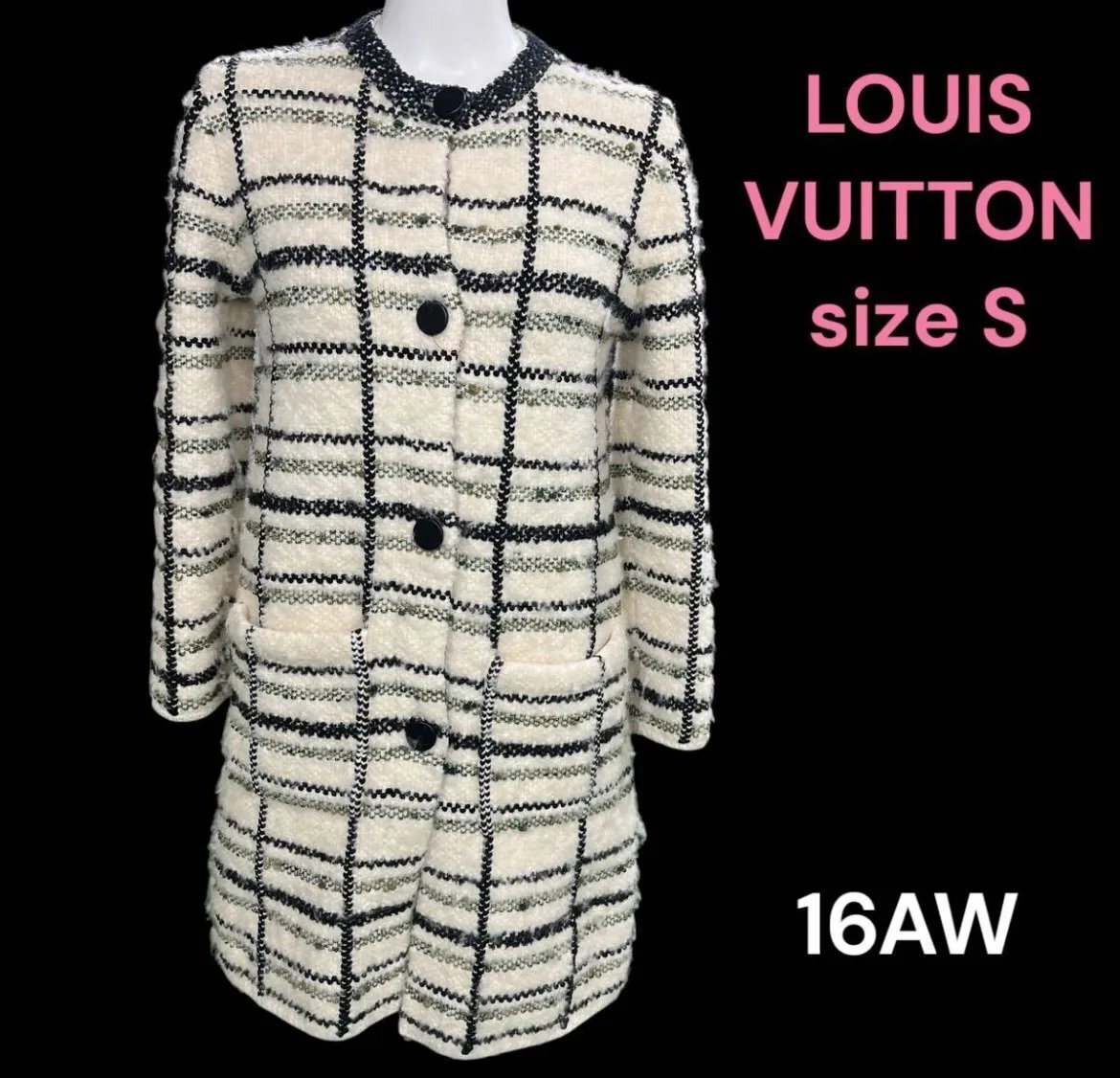 LOUIS VUITTON チェック柄コート アルパカ、ウール混 S 、7号  16AW ノーカラー ルイヴィトン ロングコート M4J556 ホワイト 上品