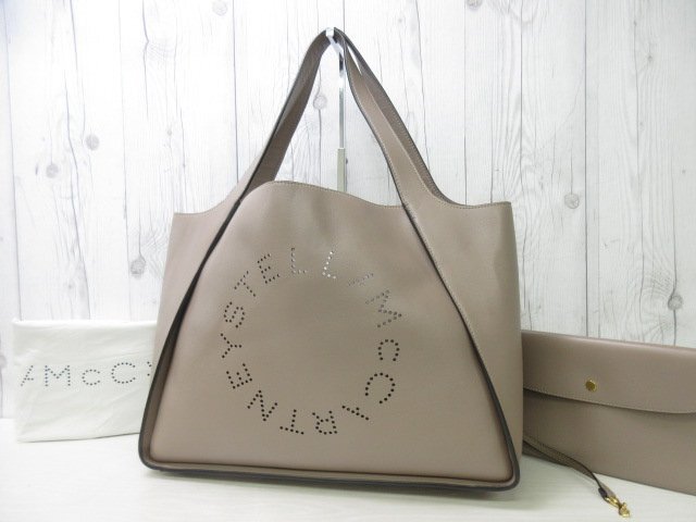 | 極美品 STELLA McCARTNEY ステラマッカートニー ステラロゴ ポーチ付 トートバッグ ショルダーバッグ エコレザー グレージュ A4可 92398Y | ||
