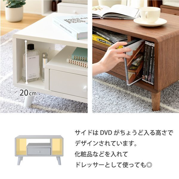 | 収納するものから設計されたデザインだから、コンパクトでも機能的。 リビングテーブルとしての機能だけでなく、DVDやティッシュ、雑誌が収納できるオープン部、リモコンなどを収納できる引き出し付き。 丸みのある北欧風のデザインはとてもおしゃれで、ひとり暮らしのお部屋にもぴったりです。 |
