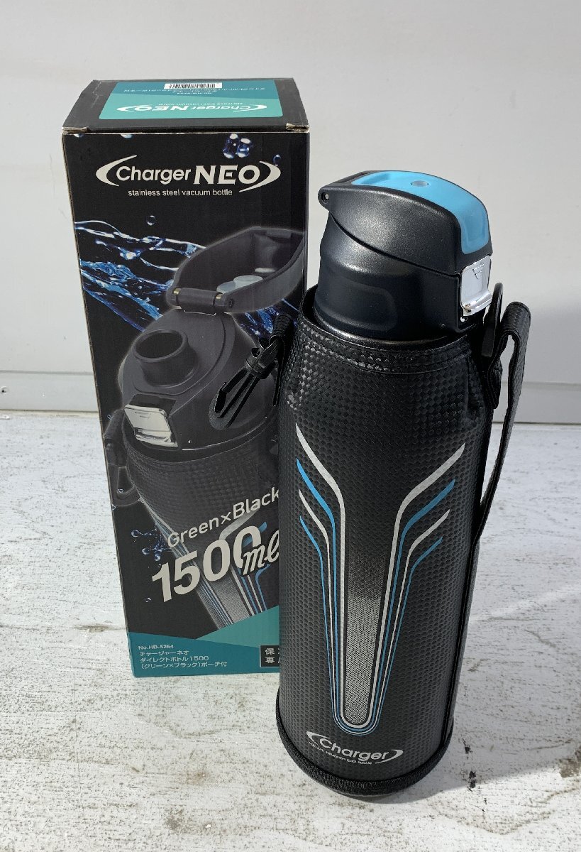 【紫波68-1-0516】【未使用/60】ステンレス製携帯用まほうびん チャージャーネオダイレクトボトル1500(グリーン×ブラック)ポーチ付