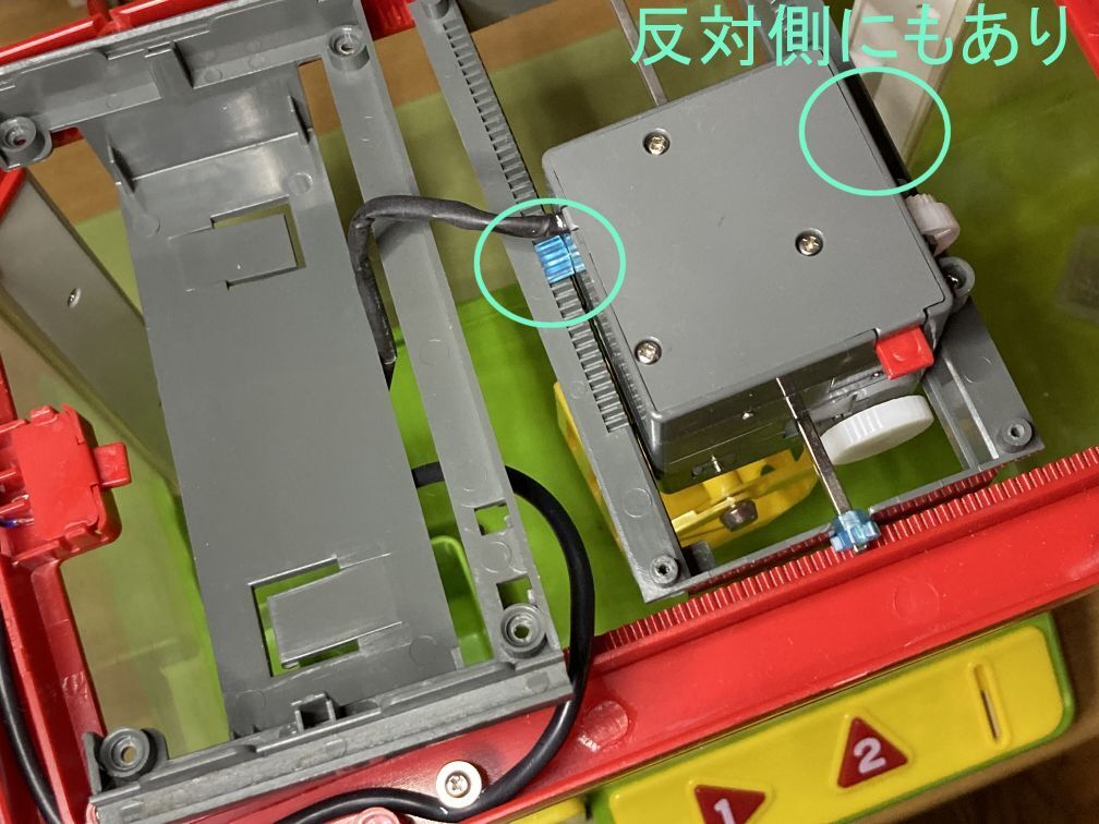 ・このギアが壊れる理由の一つとして、クレーンが端に当たってもさらにモーターを回し続けてギアに負担がかかったことも考えられます。