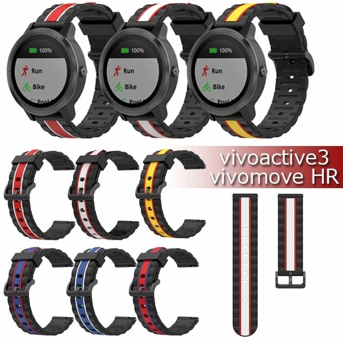 Garmin 交換用シリコン製 vivoactive3/ vivomove HR 20mm 汎用 シンプル バンド サイズ調整可能 穴留め式 柔らかい シリコン ☆6色選択/1点