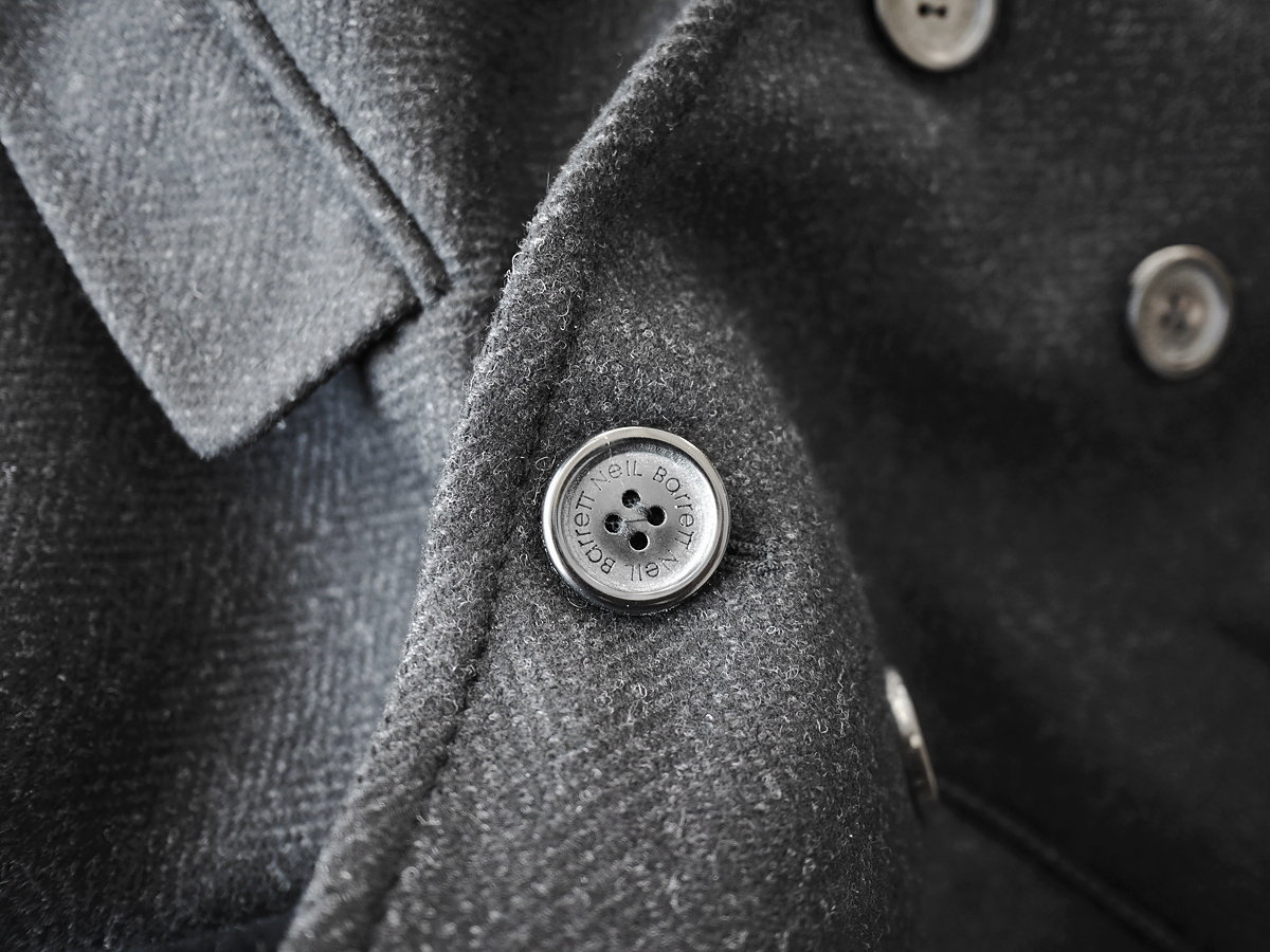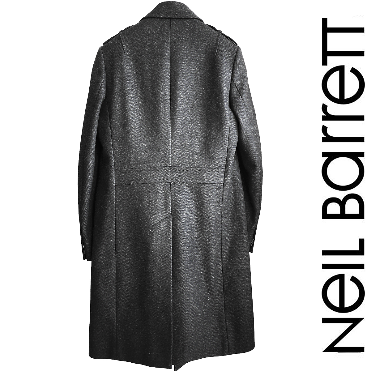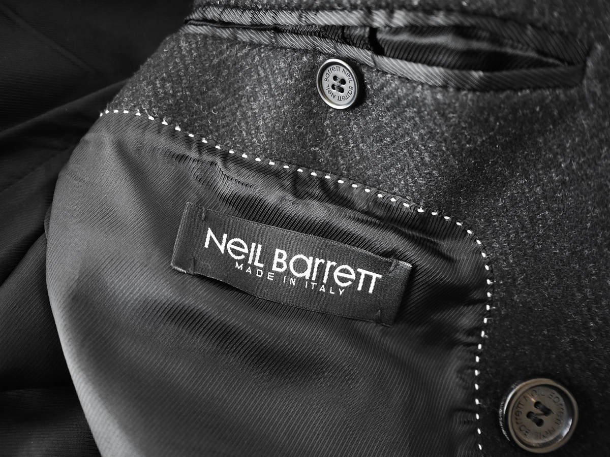 ニールバレットのカシミアブレンドウールメルトンダブルブレストコートでございます。正規路面店にて新品購入いたしました。コレクションランウェイにもたびたび登場する、ニールバレットならではのモードテイストあふれるエッジのきいたデザインの逸品です。