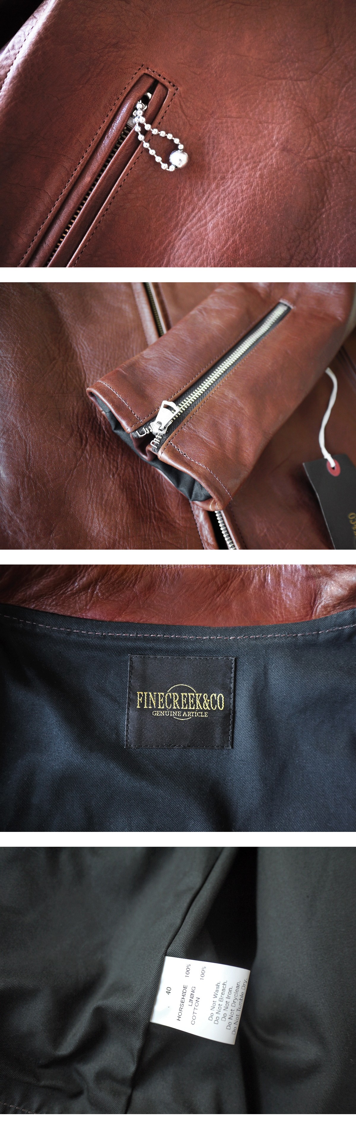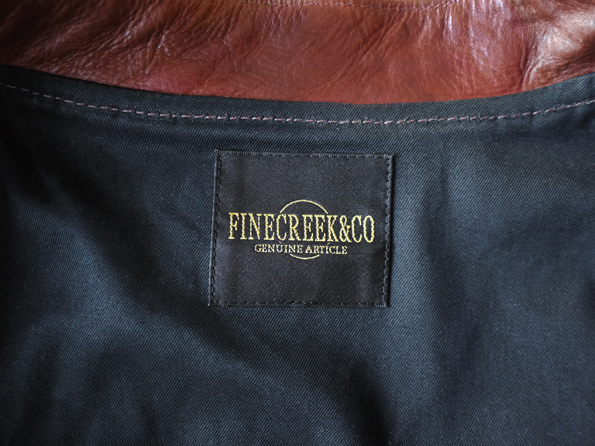 2023AW FINE CREEK &COのホースレザーライダースブルゾンでございます。ドメスティックブランドの枠を超えたクオリティへの追求、他の追随を許さない革質へのこだわりで一部のレザー愛好家から絶大な人気を博しております。2023AWモデル ACJK049 Blue Willow Brownとなります。