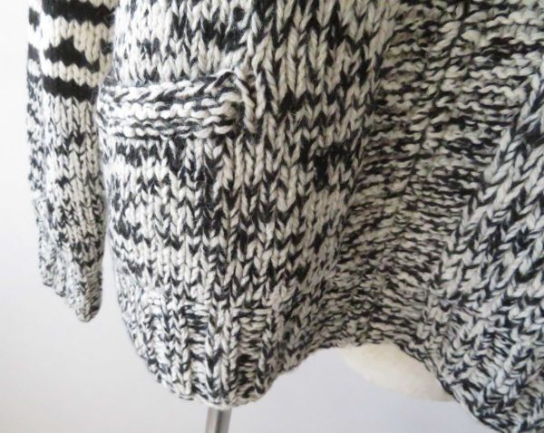 | 詳細 | 中手の編み伸縮地です。気持ちのいい肌触りの素敵なオフホワイトブラックの編み柄地です。裏面にふわりとした毛足織を配置してウインター感を綺麗に仕上げてあるジップアップカーディガンです 。 状態は綺麗なものです。 |