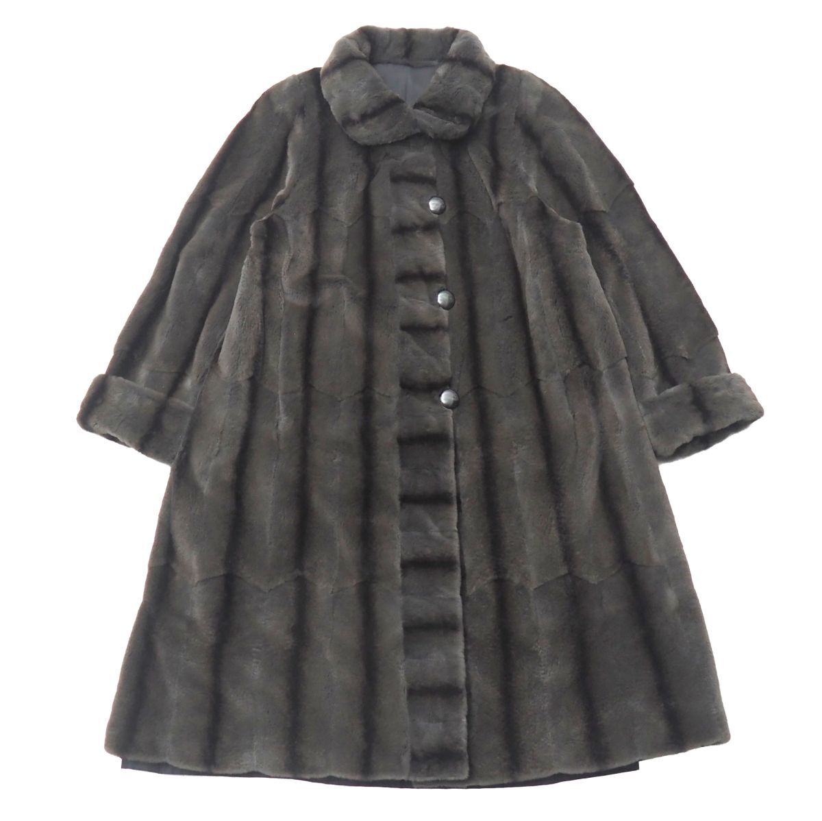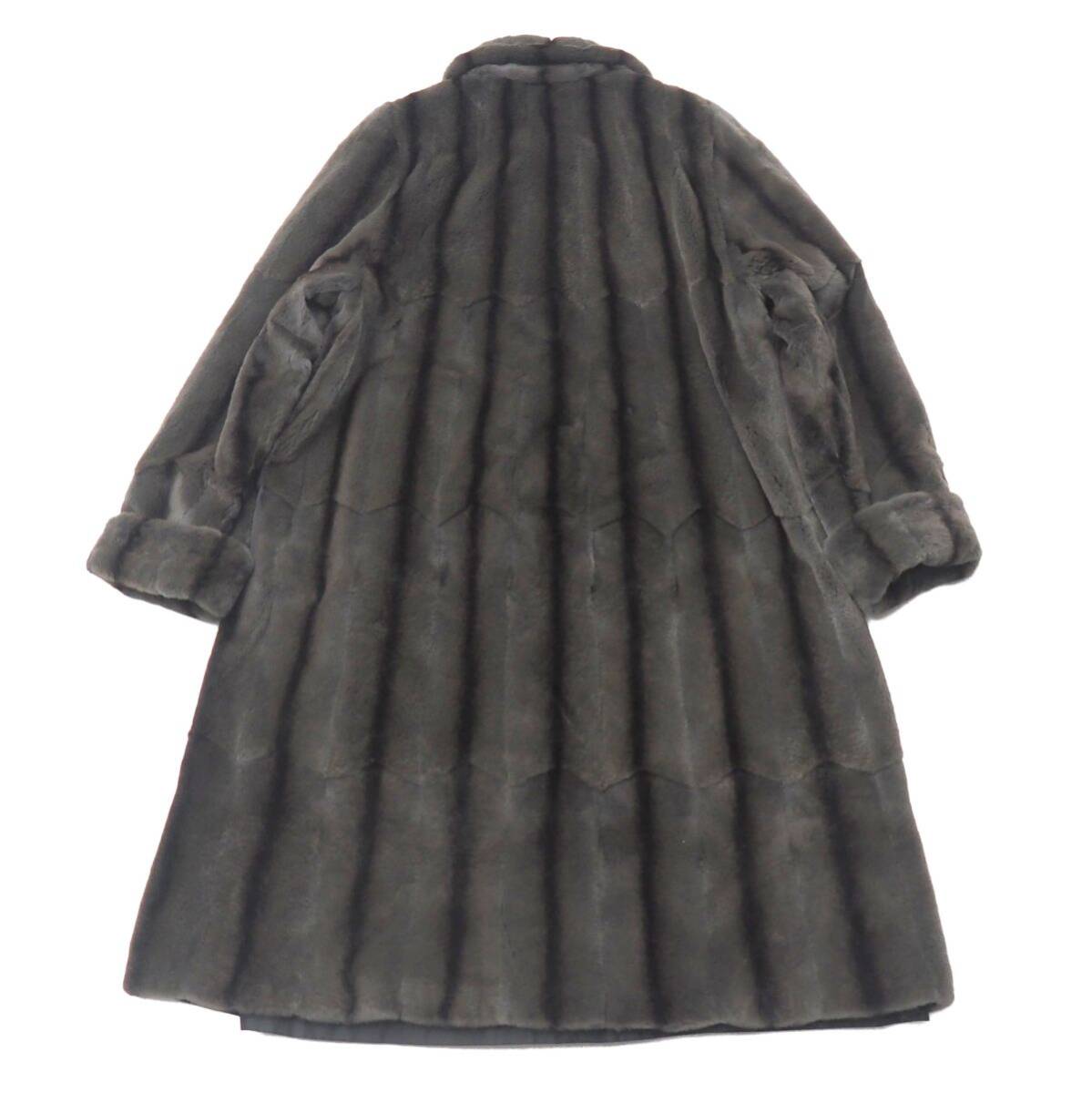 | 毛の種類GS5743◎シェアードウィーゼル ファーコート フレア リバーシブル ロングコート グレー×カーキ系 毛皮コート L~XL相当 | |||