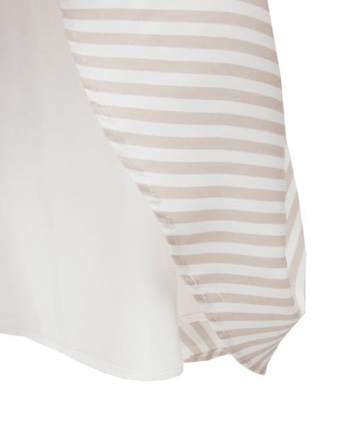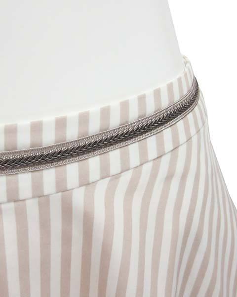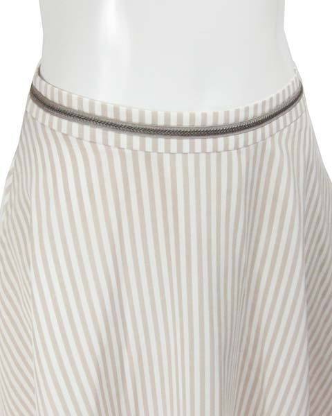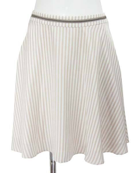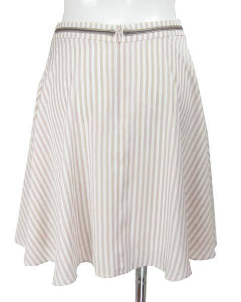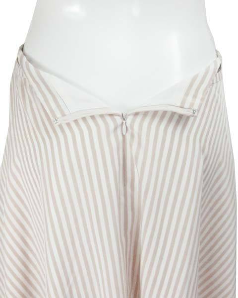 | ベージュと白のストライプのエアリーなスカート。シーズン問わずお使い頂けます。きちんと感があり、ビジネスシーンからオフの日まで活躍してくれます。 |