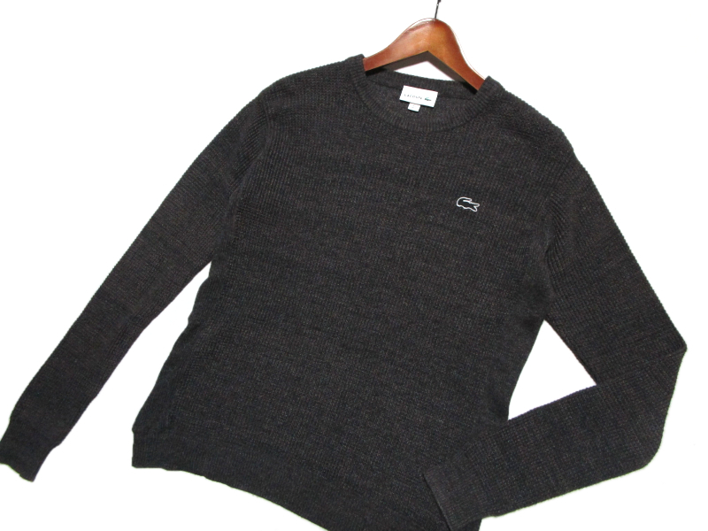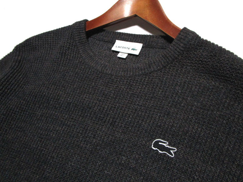 ラコステのニットです。 ワッフル編みのクルーネックセーターで、 身頃サイドはリブ編みパネルで切り替え、スポーティなデザインです。 胸にはブラックのワニロゴがデザインされています。 色はチャコールブラック系です。 参考価格17,600円のお品です。 当出品物は全て正規品です。ご安心下さい。 |