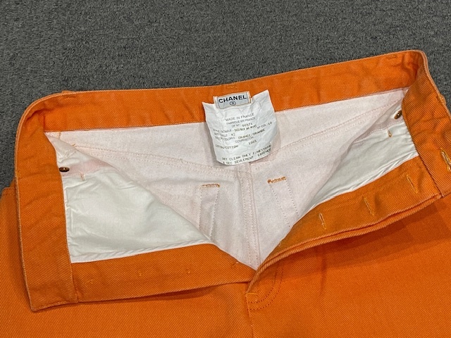 | シャネル CHANEL 303/614 60 P192 ココステッチ カラーデニムパンツ オレンジ サイズ42 USED品 |
