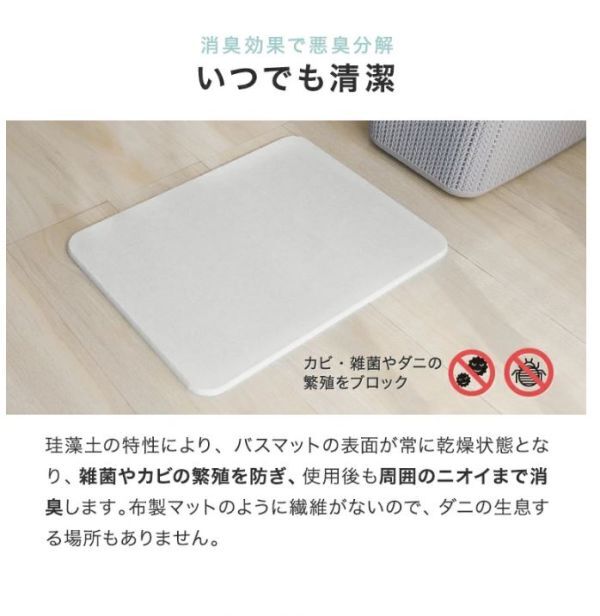 珪藻土の細孔作用で消臭効果を発揮します。 洗面所だけではなく、トイレや玄関、押し入れなどで脱臭・湿度を調整してくれて大活躍!!