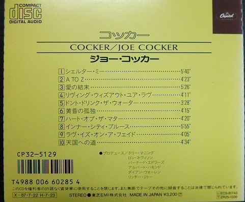 | CD・ロック★CD★コッカー★ジョー・コッカー Joe Cocker★CP32-5129 日本語ライナー付き 東芝EMI CP32-5129 全10トラック収録 86年発売 中古品 状態:並・帯無・盤面良好です ※ご入札後のキャンセル・返品は受けかねますので、商品について不明な点がございましたら、事前にお気軽にお問合せください。 ※書籍の書込みやディスクの微キズ等の状態は、できるかぎり目視で確認しておりますが、見落としについてはご容赦願います。 | ||