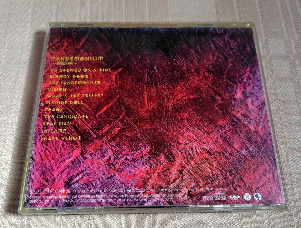 2001年日本コロムビア(COCP-31683) ●状態● CD、少しだけ薄いスリキズあり ケースに擦れあり ブックレット良好です 帯付き レンタル使用品ではありません ●収録● 1.Ya Stepped on a Mine 2.Bloody Doom 3.The Pandemonium 4.Vision 5.What's the Truth? 6.Suicide Doll 7.Chaos 8.The Candidate 9.Real Man 10.Inflame 11.Snake Venom |