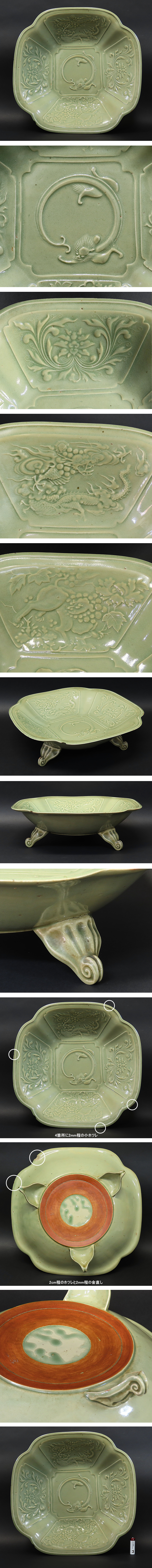 状態はヒビはございません。 三ツ足の部分は完品です。発色・上りは古九谷らしい青磁の色合いで奇麗です。