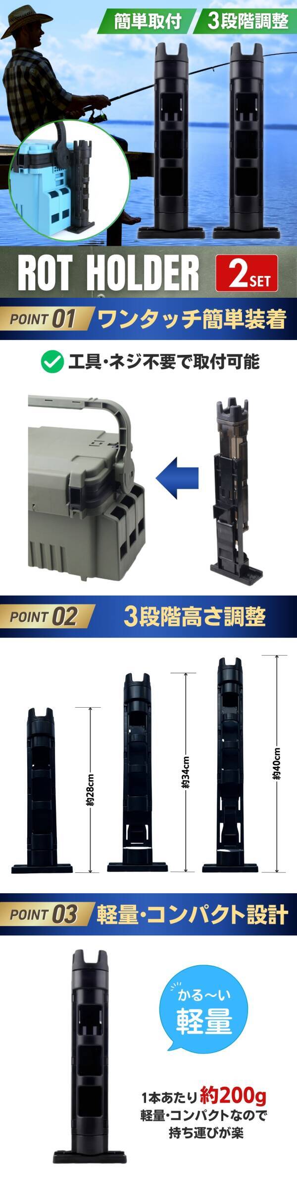| 商品説明 | ご覧いただきありがとうございます! ●商品説明 簡単に取り付けができるロッドスタンド2個セットです。 ビス止め不要・工具不要のワンタッチ設置♪ 3段階に高さ調節が可能なので、ロッドの種類によって使い分けができ便利です。 軽量・高強度素材なので楽に持ち運べて丈夫☆ 海釣り・磯釣り・堤防釣り・渓流釣り・ブラックバス釣りなどさまざまな釣りで活躍します。 アウトドアだけでなく室内ロッド立てとしても利用可能です。 ●商品特徴 ①取り付け簡単!ワンタッチ設置 ビス止め・工具不要なので初心者でも簡単に取り付けできます。 ②3段階の高さ調節 ロッドの種類やスタイルに応じて28㎝~40㎝まで調節が可能です。 ③コンパクト設計 軽量・コンパクトなので楽に持ち運びができます。 ●適合品番 ・メイホウ/MEIHO サイドポケット(BM-120) ・メイホウ/MEIHOランガンシステムボックス(VW2055/2070、VS-7055/7070/7080/7055N/7070N/7080N/7090N) ・メイホウ/MEIHO バケットマウスシリーズ(BM-5000/7000/9000) ●商品詳細 サイズ:約28.5㎝×約10㎝×約4.5㎝ ※高さは最大40㎝まで伸びます 内口径:約3.5㎝ 素材:ABS カラー:黒/ブラック 重さ:約180g/個 数量:2個セット ●お支払い方法 !かんたん決済 ●発送について 【レターパックプラスで発送します】 発送日 :お支払い後1~3日以内 到着目安:発送後2~4日程度 ※商品は配達員による手渡しとなります ※遠方の方はもう少しかかる場合もございます 【配送方法の変更はできません】 ●注意事項 ・落札後は期限内にお支払いください ・商品画像の転載や説明文のコピーはお止め下さい 〇初期不良は対応しますので、何かあれば「取引完了前に」ご連絡下さい |
