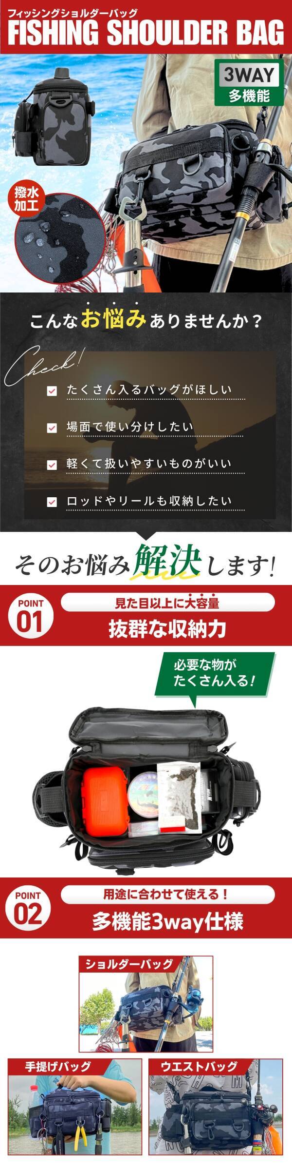 フィッシング バッグ 釣り バック ショルダー 迷彩 アウトドア ロッド ホルダー ウエスト ランガン 耐水 防水 グレー バス リール ベルト