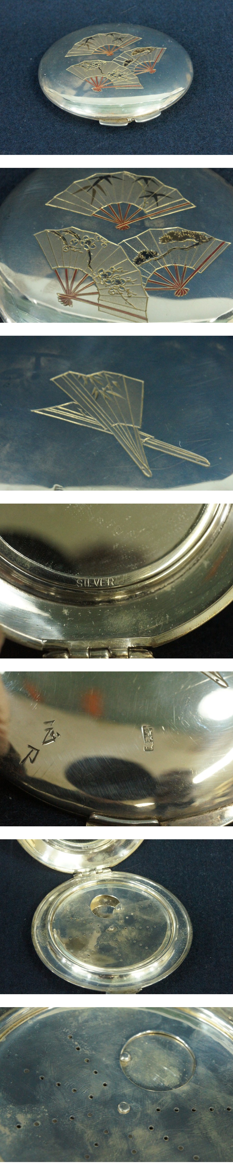●銀製 コンパクト 白粉入 扇面彫刻 一正銘