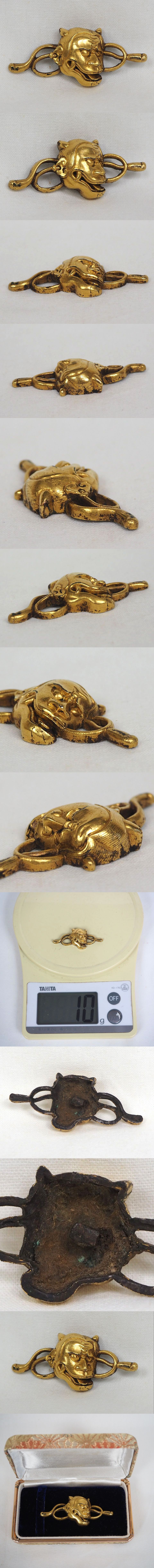 | 商品説明 | 約 5×2.1×0.8cm ご覧のように、江戸時代大名家般若面目貫です。コレクター放出品、金鍍金ではなく、金着せ(包金)です。大変珍しい物です。状態は良好です、詳しくは写真でご確認ください。 |