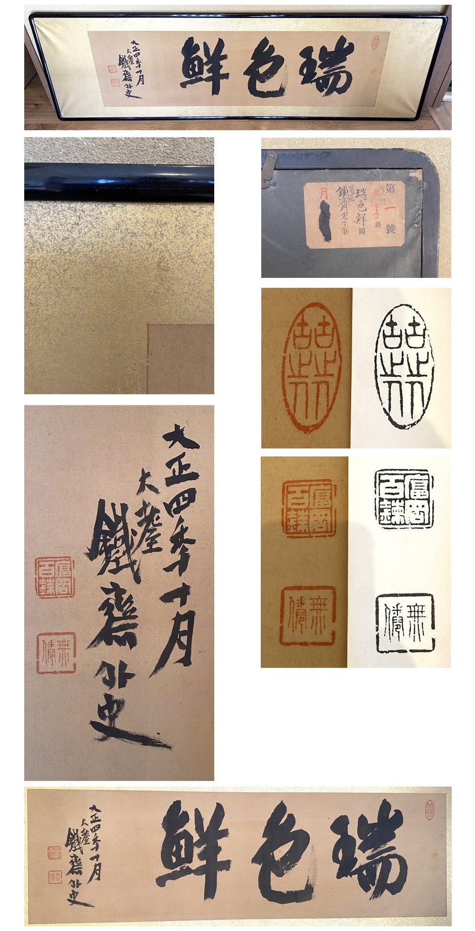 扁額 絹本 大正4年10月(78歳)晩年作です! ※印は無量壽佛堂印譜から転載しています。