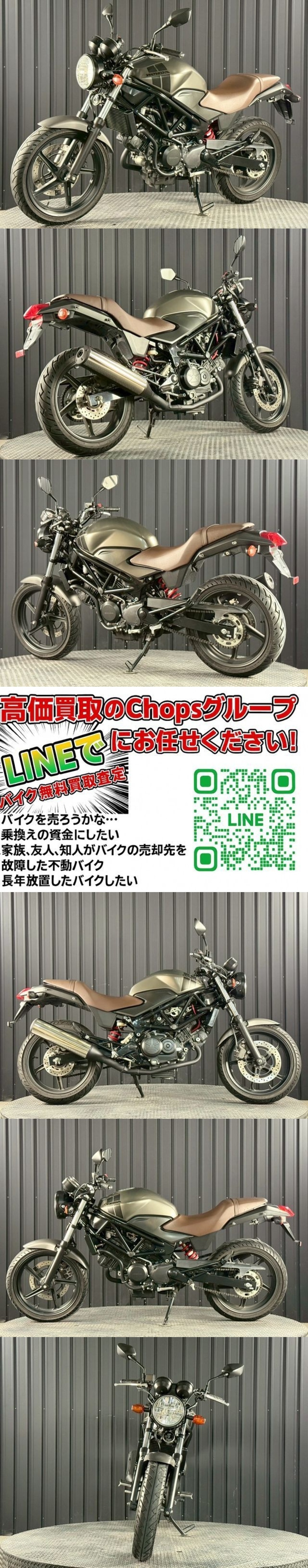| ★こちらの車両は現状販売の車両です★ 現在の価格はご納車前の整備やナンバー登録は行わずに、弊社仕入れたそのままの状態の車両をご購入頂く「現状販売価格」となっております。 従いまして、そのままの状態では道路交通法等の法令に抵触している場合がございますので「現状販売価格」で車両をご購入頂いた場合には、ご購入者様にて適切な整備やナンバー登録を行なって頂いてから公道走行を行なって頂く必要がある点にご留意下さい。 こちらの車両は当社販売店舗または保管倉庫において、直接販売をしています。 また、GOOBIKE等でも展示・併売しております。 ご落札やご連絡をいただいた時点で売約済み・商談中となっている場合もございます。 お手数かとは思いますが、必ず商品説明欄をお読み頂き「電話・LINEにて在庫確認」 又は 「ご来店にて現車確認」をお願い致します。 オークションページの画像以外にも詳細な画像や小キズ等の画像を掲載しております。 【Goobikeでの掲載ページはこちら】 1ヶ月保証/登録代行/整備付等のプランをご希望の場合や、車両状態のお問い合わせ、ご購入の相談、オートローンのご相談等につきましては販売店までお問い合わせください。 〒618-0071 京都府乙訓郡大山崎町大山崎鏡田17 TEL:075-951-8080 Email:buzzbike8080@gmail.com 営業時間:10:30~19:00 定休日:第1.3.5火曜日、毎週水曜日 より詳細な写真や動画は、LINEからもお送り出来ますので、お友達登録後、こちらのページの情報をお知らせください。 ID:@849xghmf 【Goobikeでの掲載ページはこちら】 ●登録・書類について 表示価格は現状販売での車両本体価格になりますので、登録代行・車検をご希望の場合、ご納車までに別途諸費用が必要です。 詳しくは販売店へご相談ください。 ・現状販売の場合 車検切れ車両/車検なし排気量の車両廃車証(返納証明書)と譲渡証をお渡しいたしますので、購入者様にてご登録手続き等をお願いいたします。 車検が残っている車両:名義変更が完了してから車両をお渡し(配送手配)をいたします。 弊社で整備や登録、車検、名義変更手続きを代行する場合は別途費用をいただきます。 ●現車確認は随時受け付けております。現車を確認せずにご落札・ご購入いただいた場合、掲載していない不具合含め如何なるクレームも承ることはできません。あしからずご了承くださいませ。 ●現車確認ご希望の方は、直接販売店までお問い合わせください。 ★で落札・お取引きいただく場合★ 落札いただいたとしても、店頭で商談中・売約済みの場合やバイクショップ様・業者様にて売約の場合もあります。店舗での販売を優先しています。 入札前には必ず在庫の確認をお願いします。 でご落札いただいた場合は現状販売のみでのお引渡しとなります。 追加料金をいただいても整備等は承ることができませんので、あらかじめご了承くださいませ。 整備や登録等をご希望の場合は販売店にてご契約をお願いいたします。 ご納車前の整備やナンバー登録は行わずに、弊社仕入れたそのままの状態の車両をご購入頂く「現状販売車両」となっております。 従いまして、そのままの状態では道路交通法等の法令に抵触している場合がございますので「現状販売価格」で車両をご購入頂いた場合には、ご購入者様にて適切な整備やナンバー登録を行なって頂いてから公道走行を行なって頂く必要がある点にご留意下さい。 ●書類について 車検なしの車両、車検切れの車両については、廃車証(返納証明書)と譲渡証をお渡しいたします。 で落札された場合、登録代行、車検、予備検査等はいたしません。 車検が残っている車両は名義変更が完了してから車両をお渡し(配送手配)をいたします。 ●車両のお引渡しについて 発送地域・方法が確定してから送料をご案内いたします。 ①アイラインさんまたは弊社指定の配送業者さんによるご自宅まで配送 ②BASさんによるデポ間配送 ③高槻市の弊社倉庫にてお引渡し ①または②の配送でお渡しの場合、お手元に到着した時点で商品の確認をしてください。 商品状態は目視で確認できた状態を記載させていただいております。 下記に記載しておりますが「停止状態での車両チェック」が基本の現状販売となります。 配送の場合は「配送業者より受け取り、受領サインをする前」に必ずご連絡ください。 ※「配送業者より受け取り・受領サイン後」は一切補償ができませんのでご注意ください。 ★現状販売の注意事項 中古車両ですので、サビ、キズ、ワレ、汚れ、経年劣化、カメラ、PC環境による色味の違い、また価値観の違いも含めて感じ方の相違は必ずあります。 神経質、几帳面な方、店頭販売の中古車と同じクオリティーをお探しの方などはご入札されない様お願い致します。 見落とし、記載もれなどありましても現物優先になりますので細かいキズなどが気になる方は現物確認に是非お越し下さい。 陸送による納車の場合、長い時間トラックで運ばれて移動するため車両