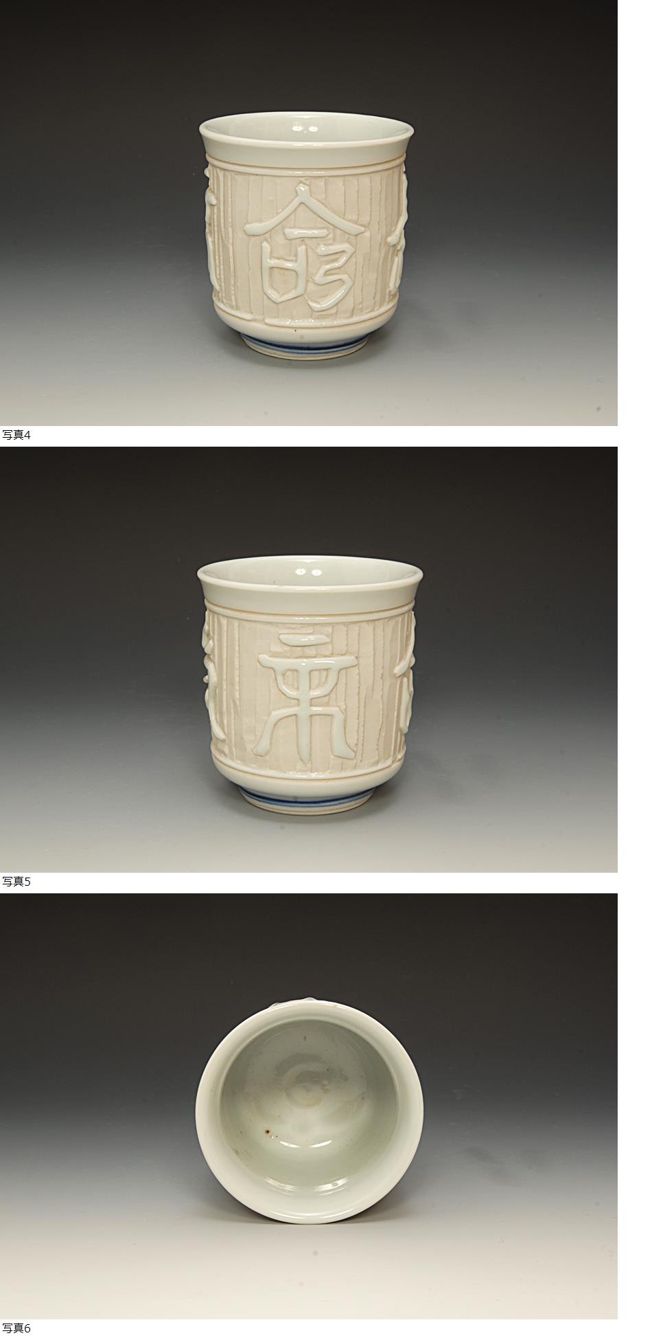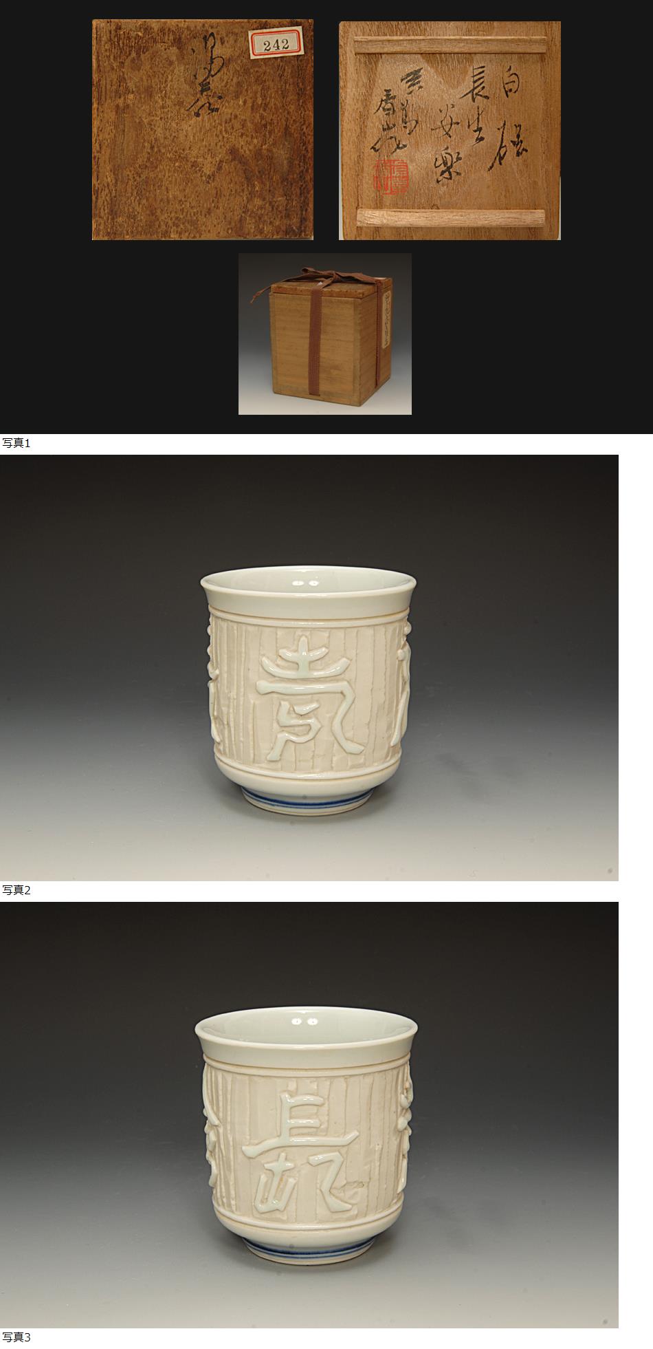 星庵厳選名品企画 真葛香山 白磁浮紋長生安楽字湯呑 共箱