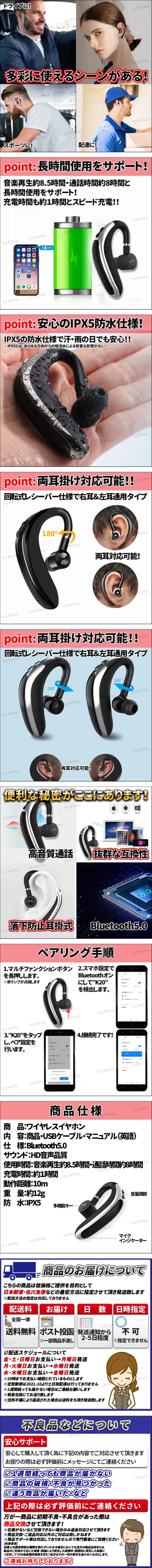 | ご覧頂きありがとうございます! 耳掛け式Bluetoothイヤホン(片耳仕様)の紹介です! 片耳タイプのワイヤレスイヤホンになります 片耳が空いていることでドライブ・スポーツ・ビジネスに最適でながら作業にぴったり! 回転式レシーバー仕様のため右利き・左利き両方対応OK 長時間使用しても耳に負担がかかりにくい仕様となっております 是非、ご利用ください! | ||