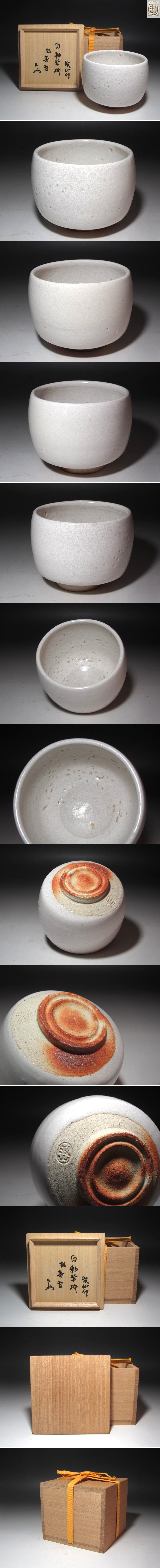 ★ 板谷波山 白釉茶碗 表千家 十三代即中斎の花押がございます★x644