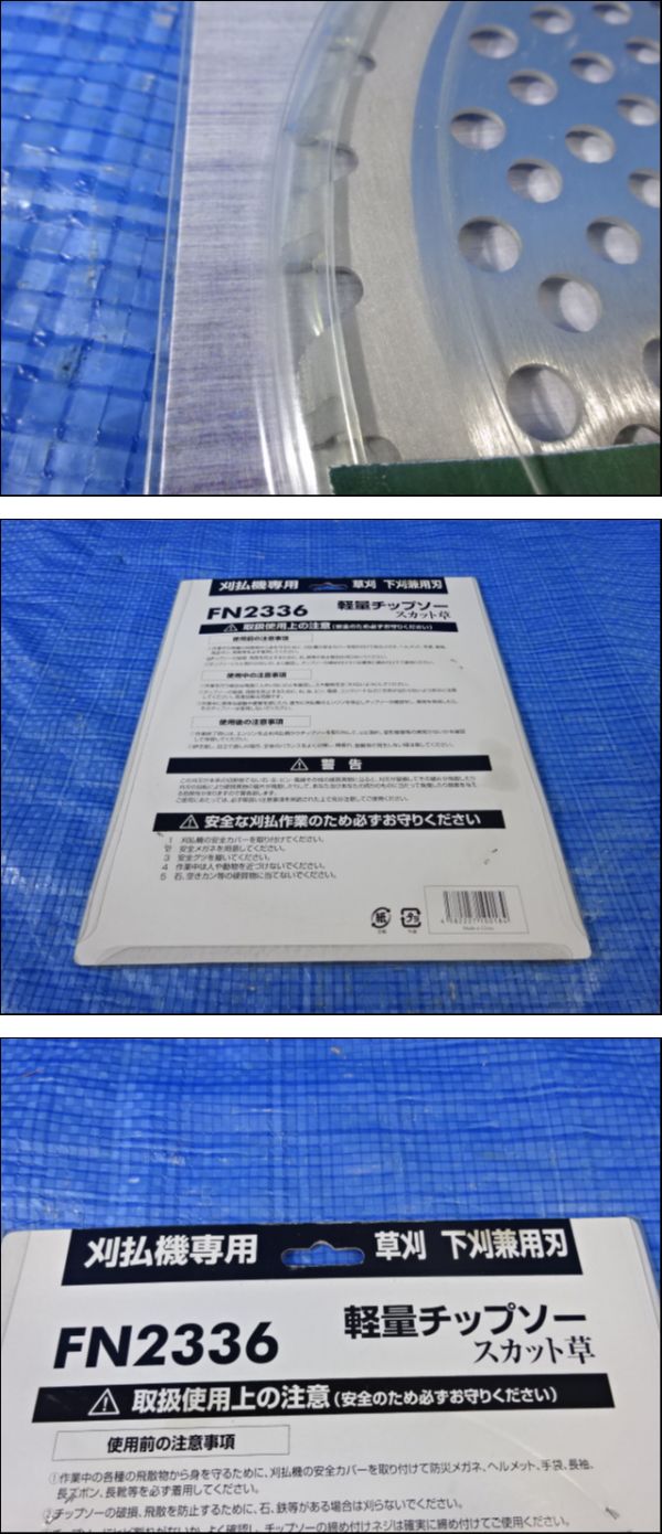| 商品説明 | ◆X-91/Isys アイシス スカット草 外形230mm 刃36枚 軽量型 メッシュ加工 強力埋込みチップ 刈込機専用 草刈下刈兼用 軽量チップソー ◆未使用保管品 ◆カバーに汚れ有り ◆佐川急便60サイズ ◆梱包サイズになりますが、集荷ドライバーにより異なる場合が御座います。 ◇簡単決済での御入金の落札者様は、必ず簡単決済で入金しましたと御連絡を宜しくお願い致します。 ◇落札者及び、取り置き希望の落札者は様お届け先情報の記載を必ずお願い致します。 ◆取り置き希望の落札者様も、かんたん決済の期限内の決済をお願い致します。 ◆かんたん決済の期限が過ぎた場合は、振込口座のお知らせを致します。
