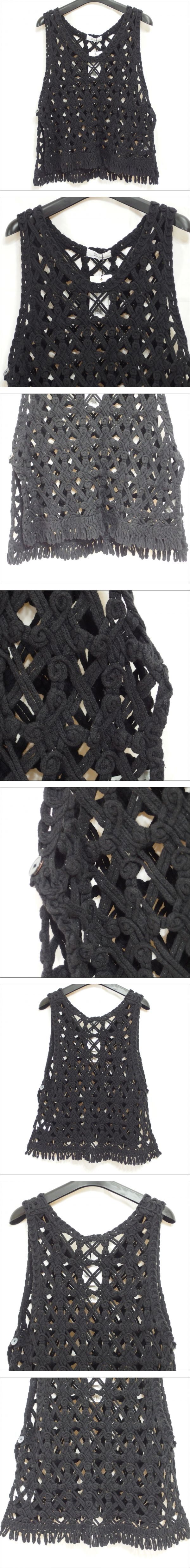 KAKELA&TRANQUIL◆カケラ&トランクイル 手編み風 コットンニット フリンジ付き ベスト(ブラック)サイズフリー・タグ付◆未使用保管品 C | |||