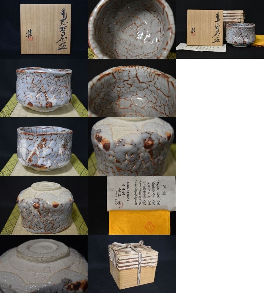 【光成】西山窯・水野桂作「鼡志野桃山写・大振茶碗」共箱・未使用・桐正目箱