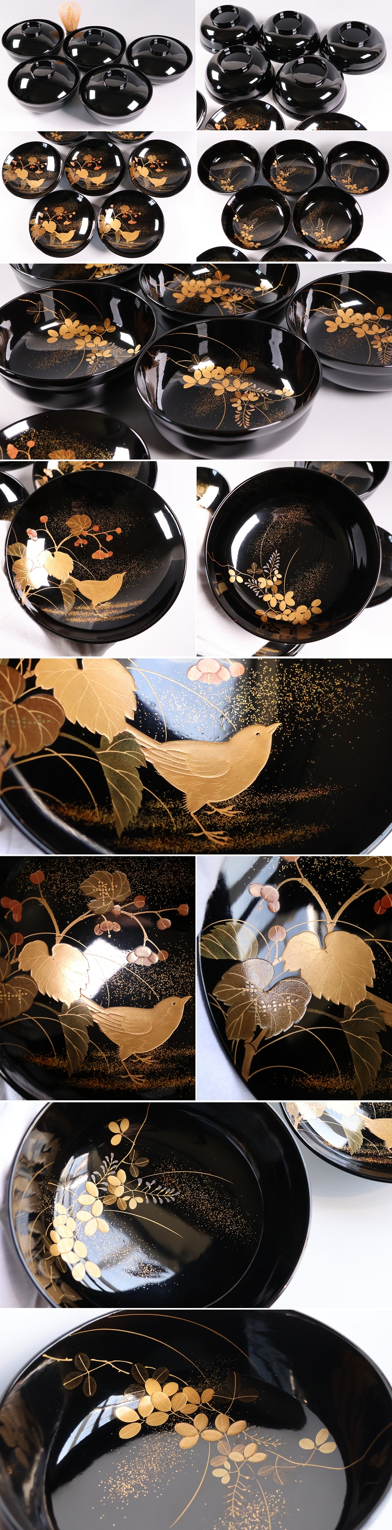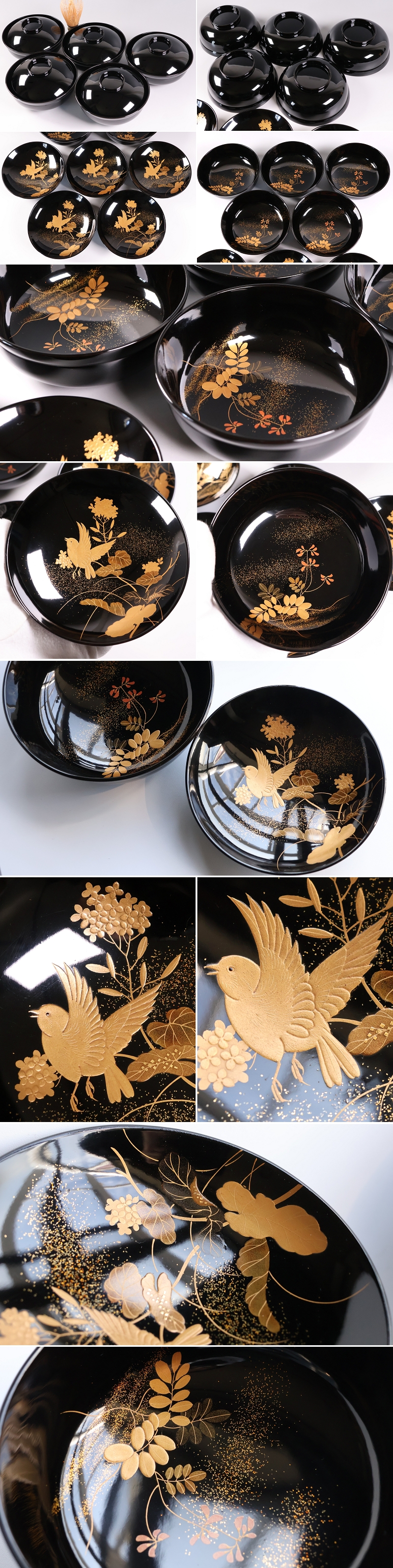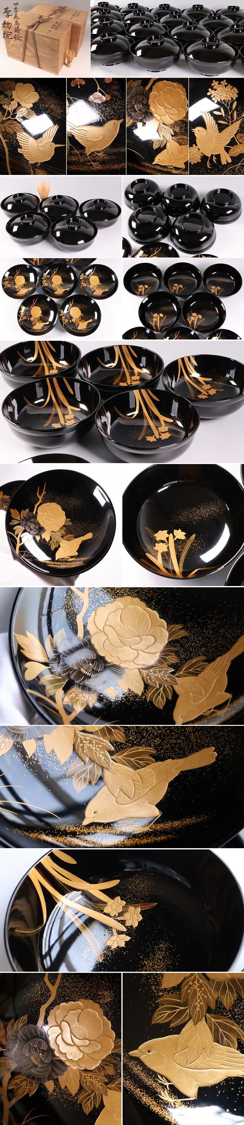 天然木漆塗 加賀蒔絵 四季花鳥 絵変わり金蒔絵