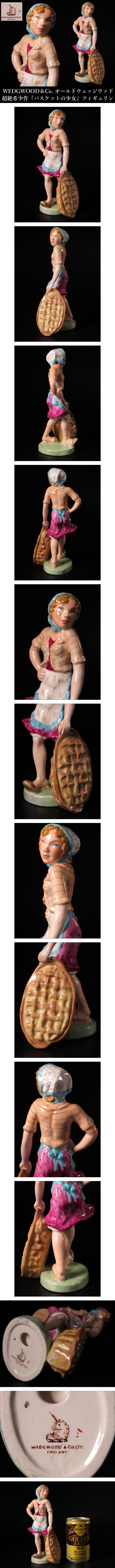 【ONE'S】超絶希少作品 20世紀初頭 WEDGWOOD&Co. オールドウェッジウッド 『バスケットの少女』 フィギュリン オブジェ 高17cm 西洋美術 | |||