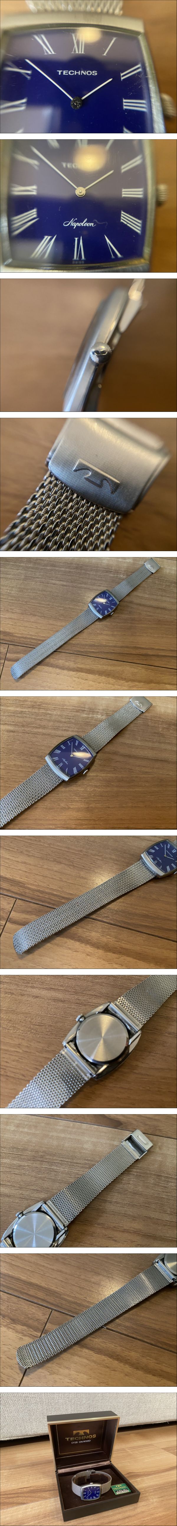 | 商品説明 | 【商品説明】 TECHNOS(テクノス) ナポレオン 腕時計の出品です。 クラシカルで上品なトノー型ケースに、ローマンインデックスが映える落ち着いたデザイン。ビジネスからフォーマルまで幅広くご使用いただけます。 【状態】 ・稼働品(日差、稼働時間は未確認) ・風防・ケースに目立つ大きな傷は見受けられませんが、保管に伴う微細なスレはございます ・ベルトはメッシュタイプで雰囲気良好です ・外箱・内箱付き(経年による劣化あり) 【サイズ(約)】 ・ケース幅:訳28.4mm(リューズ除く) ・腕周り:調整可能 【付属品】 ・純正BOX 【注意事項】 ・中古品のため、神経質な方はご入札をお控えください ・現状渡しとなりますので、状態は画像にてご確認ください ・ノークレーム・ノーリターンでお願いいたします 【おすすめポイント】 シンプルながら高級感のあるデザインで、年齢問わず長くご愛用いただける一本です。コレクションや普段使いにも最適です。