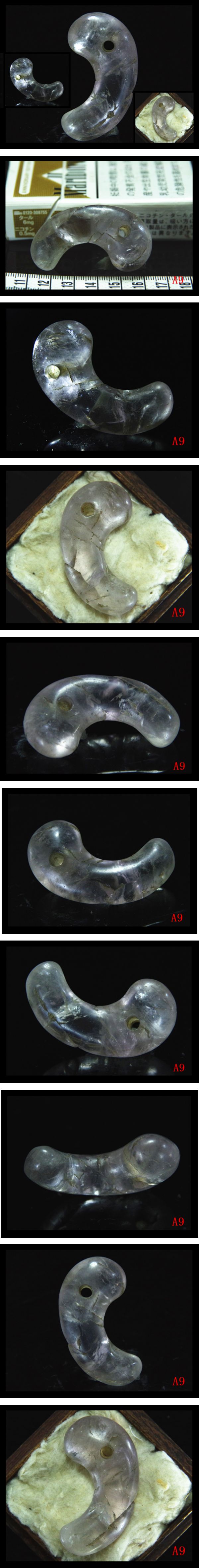 ★極希少★上古薄紫水晶製★内部水晶特有な結晶が見られ★特大5.32cmコ字形勾玉 時代の神聖呪具。 深みのある上古色溢れる、見る角度によって色んな豊富な表情、ずっしりと重い素敵な造形、迫力な存在感厚重感あり 御覧にように 極希少迫力コ字形★内部水晶特有な結晶が見られ★比類ない迫力造形★古い時代に伴う表面風化によるカセたりして状態、石紋、エクボ擦れが見られますが、磨きも非常に良く★古色と魅力に溢れるさまツヤツヤとした神秘的な艶に包まれてます。 ★ずっと見ていても飽きないほど美しい綺麗な形 穴内部には土錆が見られ周辺は玉擦れ痕が見られます。 強光で見ると,全体的に光を拡散し★綺麗な神秘幻的不思議な透明感が見られます。 極少なくその希少性も大きな価値となっています 大変貴重な迫力のあるお古玩★古美術品勾玉 時代古玩骨董★古美術品が好きの方是非この機会に ★商品表面の土錆、朱彩、汚れ、擦れ、傷、石目、石筋等が御座います。 古玩★古美術品の事、ご理解のある方のみ落札 下さい。 |