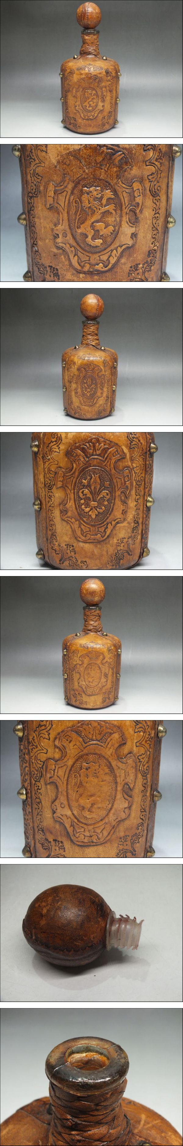 レザー 酒ボトル 空き瓶 アンティーク 酒器 ブランデー ウイスキー 骨董品 ヴィンテージ | |||